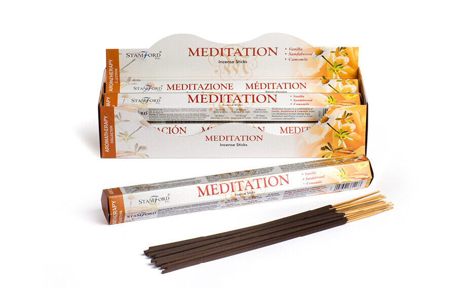 Quality incense from Stamford, one of the leading incense makers in India.Incense sticks can be used for Aromatherapy, Spa, Yoga, Weddings, Reiki, Meditation, Healing, Sensual Therapy, Positivity, Relaxation and much more. Box containing around 20 sticks each tubes of incense. Scent: Meditation. Burning time: 35-45 minutes.